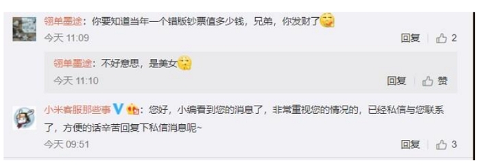 這位網友抱怨,自己好不容易拿到了小米9,結果卻是這樣一款「特別版」,感覺很失望。不過,所幸小米客服 很快聯繫了網友。